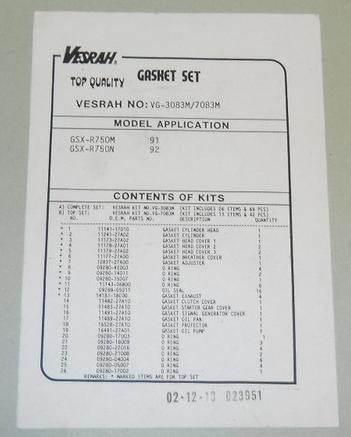 Комплект прокладок и уплотнителей для Suzuki GSX-R 750 M 91, GSX-R 750 N 92
